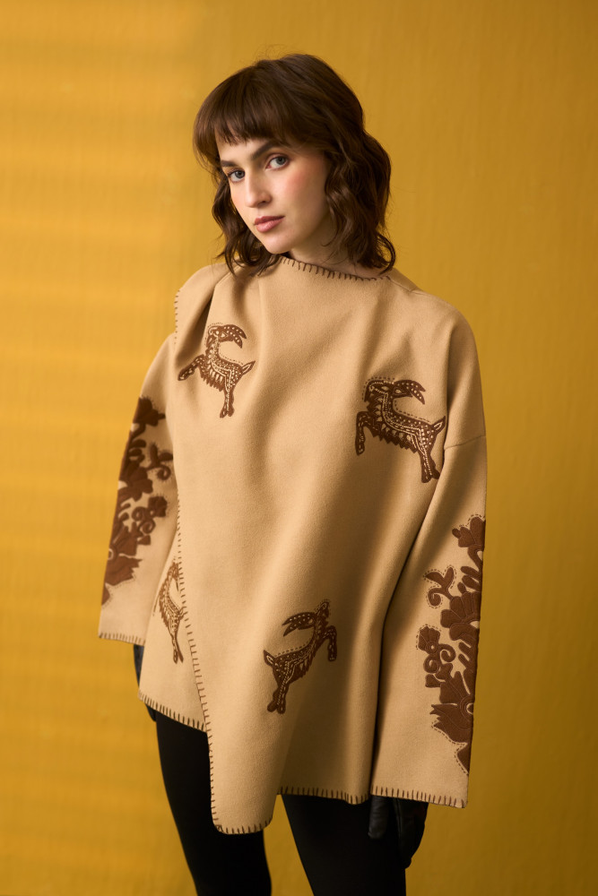 NOMADS BEIGE FELT FLORA & FAUNA EMBROIDERED WINTER CAPE